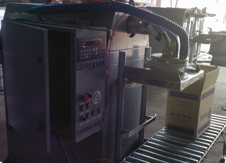由操作人员放好包装桶(箱)后,轻踩一下脚踏开关,包装机自动提升包装桶(箱)并开始变频加料,重量达到设定值时,自动结束包装,包装桶(箱)自动降落下来。操作人员即可进行下一次放桶(箱)包装。